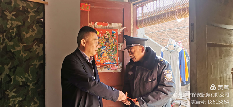 開展送溫暖活動是公司開展的一項重要工作,是關心保安員、愛護保安員、幫扶保安員的實際行動,是增強保安隊伍凝聚力、號召力和戰(zhàn)斗力的具體措施。我公司針對貧困職工的具體情況,精心組織、統(tǒng)籌安排、深入推進扶貧工作的開展。慰問組為特困員工送去慰問金1000元,慰問物資:20斤食用油、大米20斤、面粉20斤。