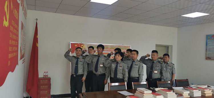 全體黨員重溫入黨誓詞。向黨旗舉起右手,集體重溫入黨。