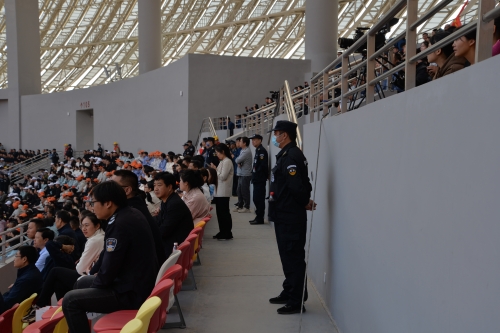 全體執(zhí)勤人員于今早6點到崗,堅持“安全第一”的原則,按照整體布防、文明執(zhí)勤的方式,各安保小組協(xié)同作戰(zhàn)、密切配合、層層把關(guān),圍繞進入口、檢票口、入場口、看臺區(qū)及會場外圍進行執(zhí)勤安保和巡邏防控,建立了*嚴密的安保防線,構(gòu)筑了*堅固的安保屏障,為廣大群眾營造了一個安全、穩(wěn)定、有序的開幕式環(huán)境。